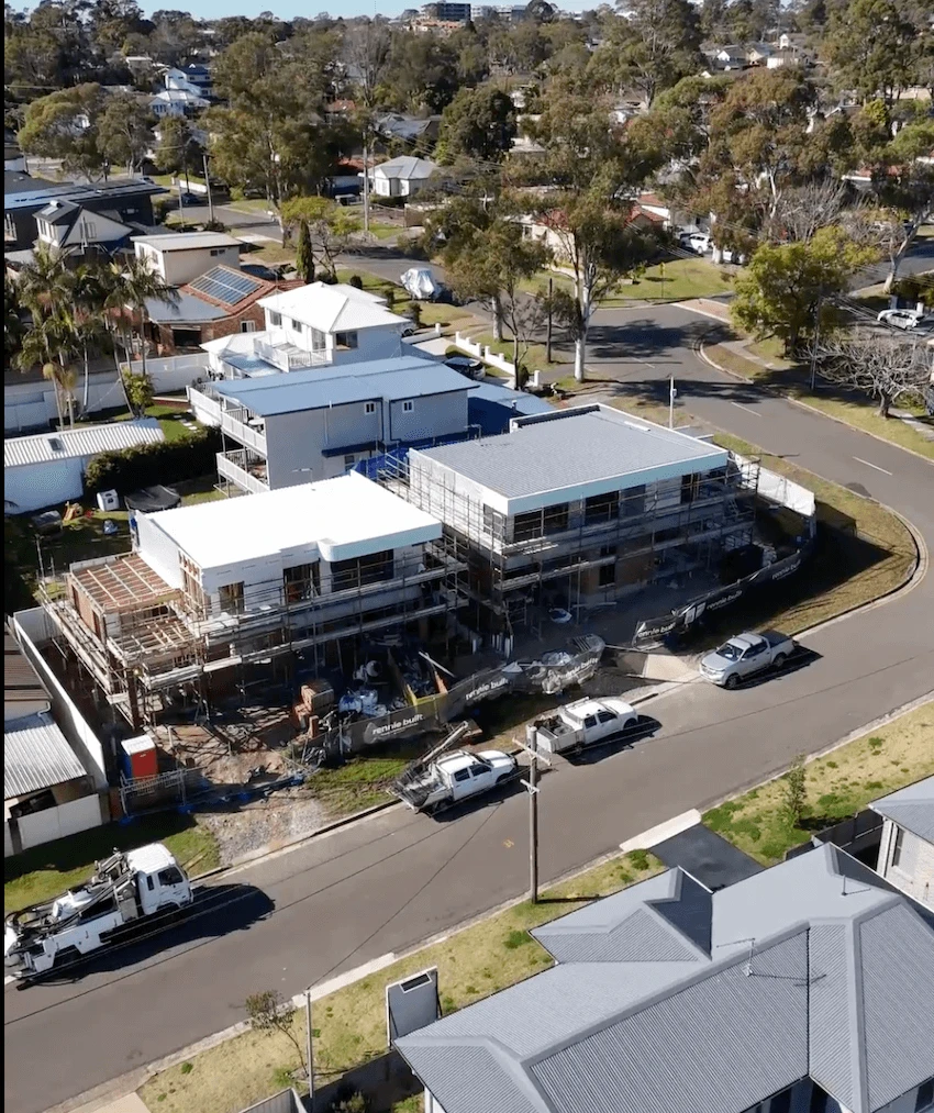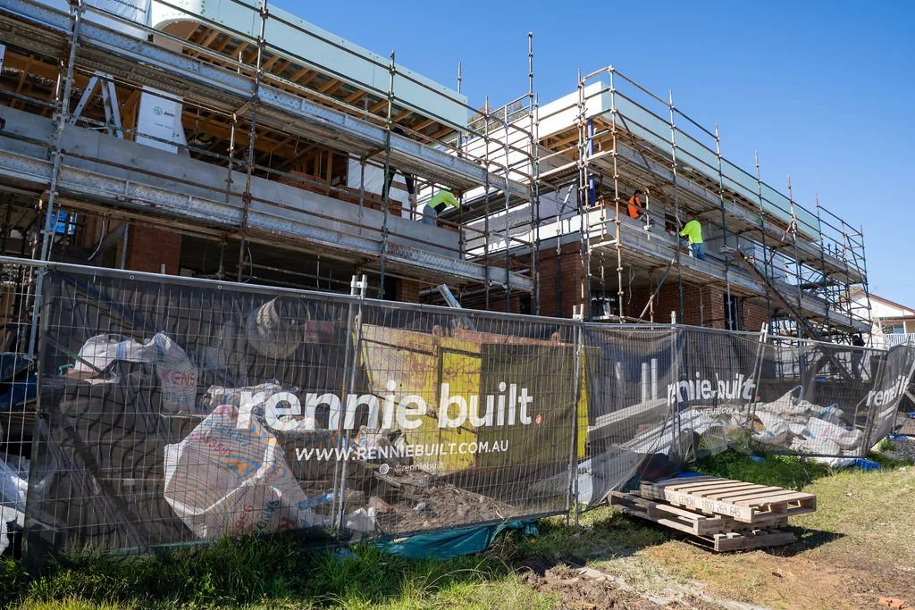 Site progress captured for a duplex build in Engadine as the project moved beyond roofing and into internal and external finishes.